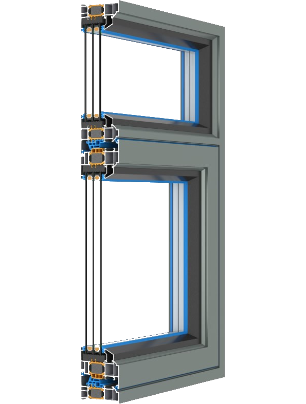 隔断型材的热传导通路,高强度和高韧度的隔热条,大幅度提高了整窗的隔热保温性能